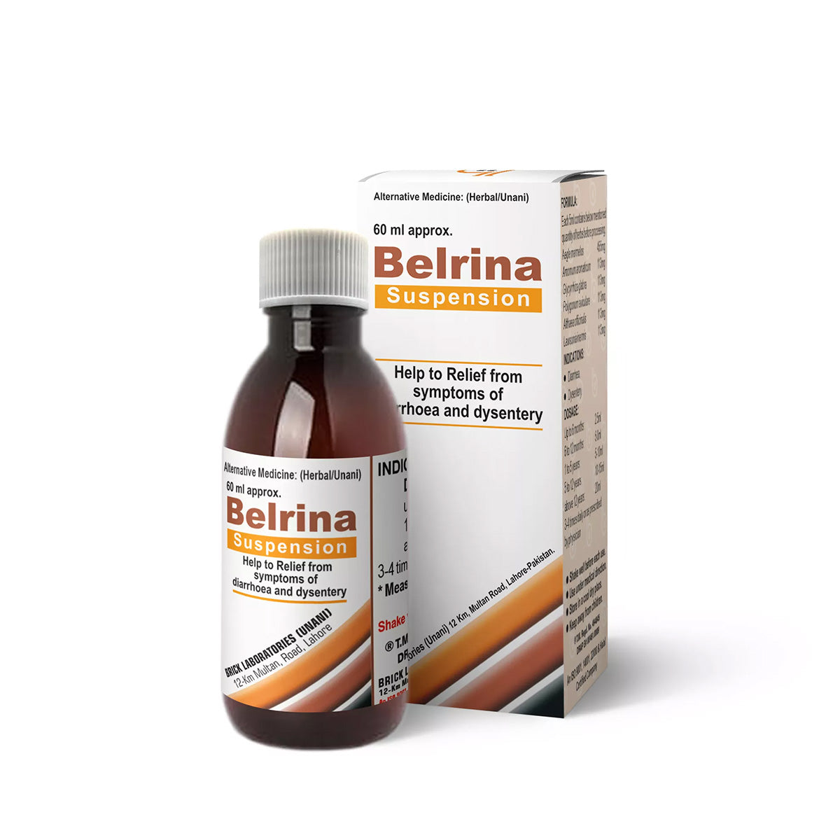 Beauty of Belrina lies in the combination of medicinal herbs with definite anti-diarrheoal and antidysenteric effects accompanied with antispasmodic, antiflatulent, astringent, antiemetic and digestive properties. Aegle marmelos (being the principal ingredient) alongwith Amomum aromaticum, Glycyrrhiza glabra, Polygonum aviculare, Althaea officinalis & Lawsonia inermis.