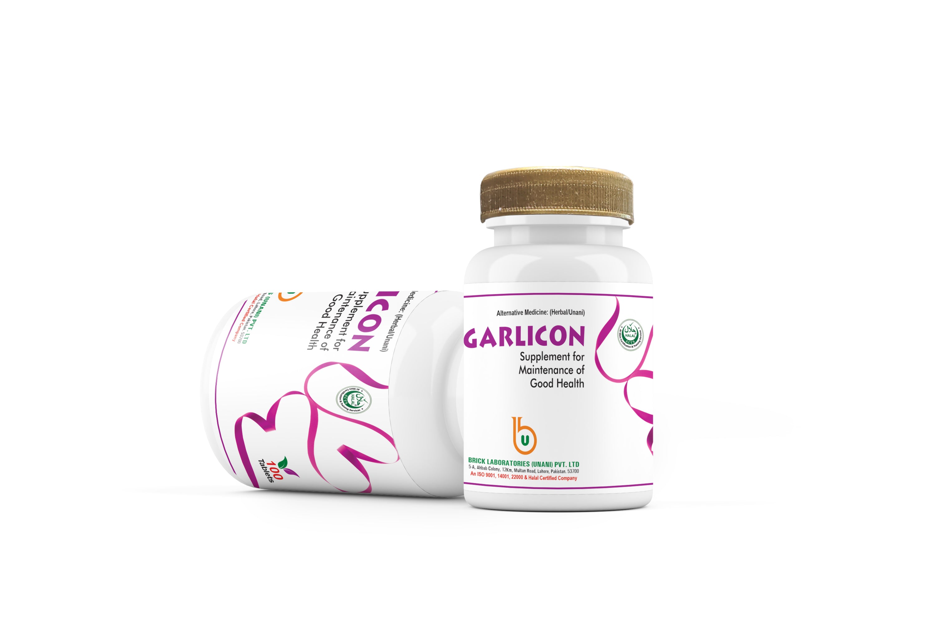 It is simple garlic powder dried under controlled temperature (below 60⁰C), in a special dosage form i.e. Enteric coated tablets. As the clinical use of garlic (Allium sativa) is approved by German Commission E and the European Scientific Cooperative on Phyto-therapy for hyperlipidemia and atherosclerosis (Heart diseases), therefore Garlicon helps to protect you from the risk of high serum cholesterol levels and heart diseases.