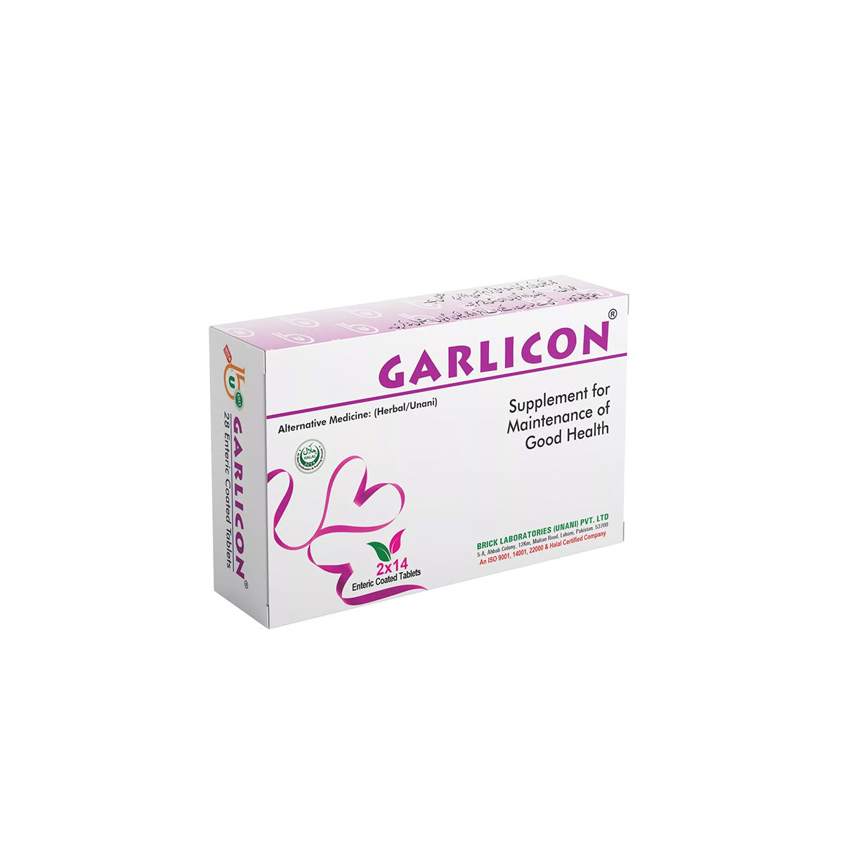 It is simple garlic powder dried under controlled temperature (below 60⁰C), in a special dosage form i.e. Enteric coated tablets. As the clinical use of garlic (Allium sativa) is approved by German Commission E and the European Scientific Cooperative on Phyto-therapy for hyperlipidemia and atherosclerosis (Heart diseases), therefore Garlicon helps to protect you from the risk of high serum cholesterol levels and heart diseases.